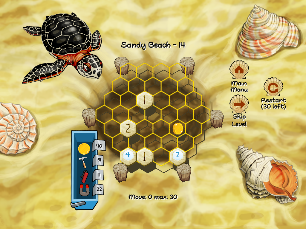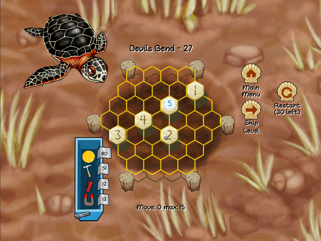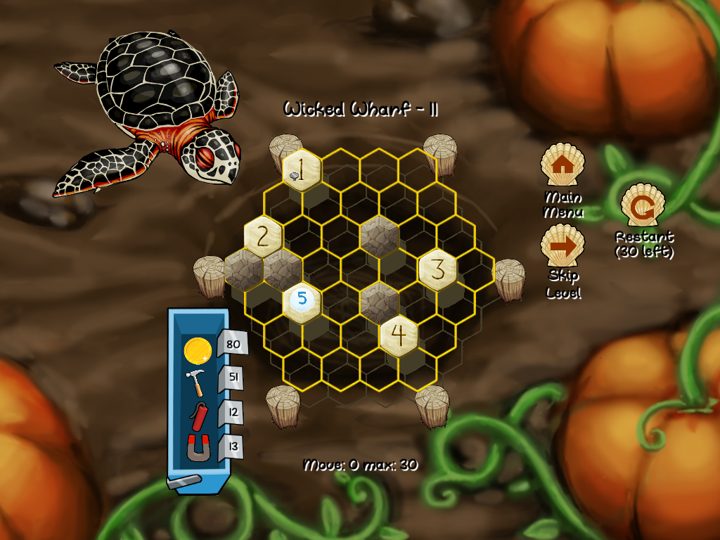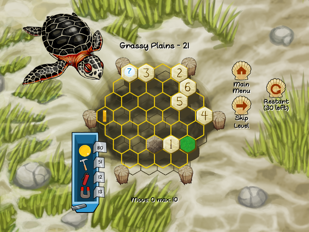 If the level gets too difficult, you have two ways to move forward. Press Skip Level. For 15 coins, you can see the solution. For 10 coins, you can just skip to the level.