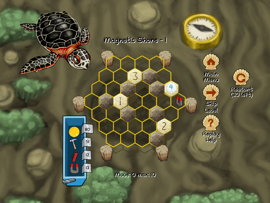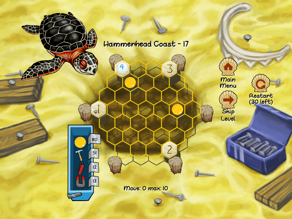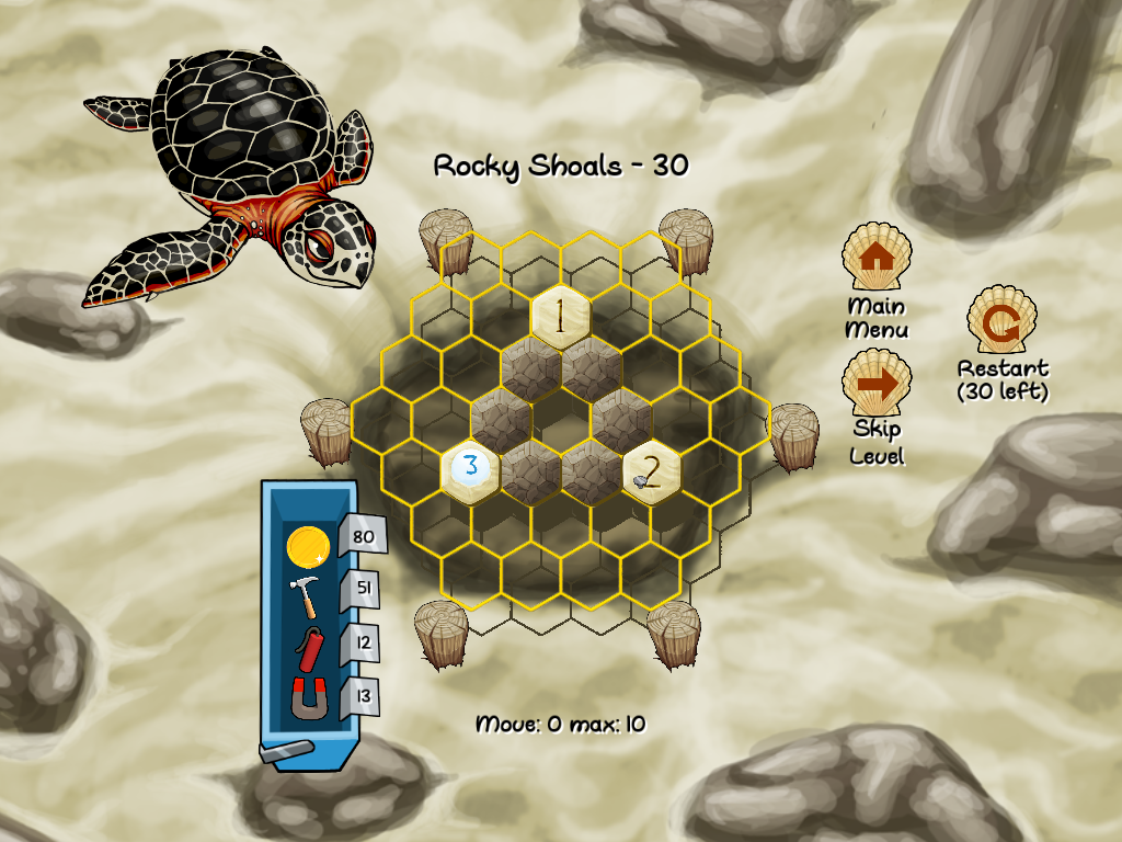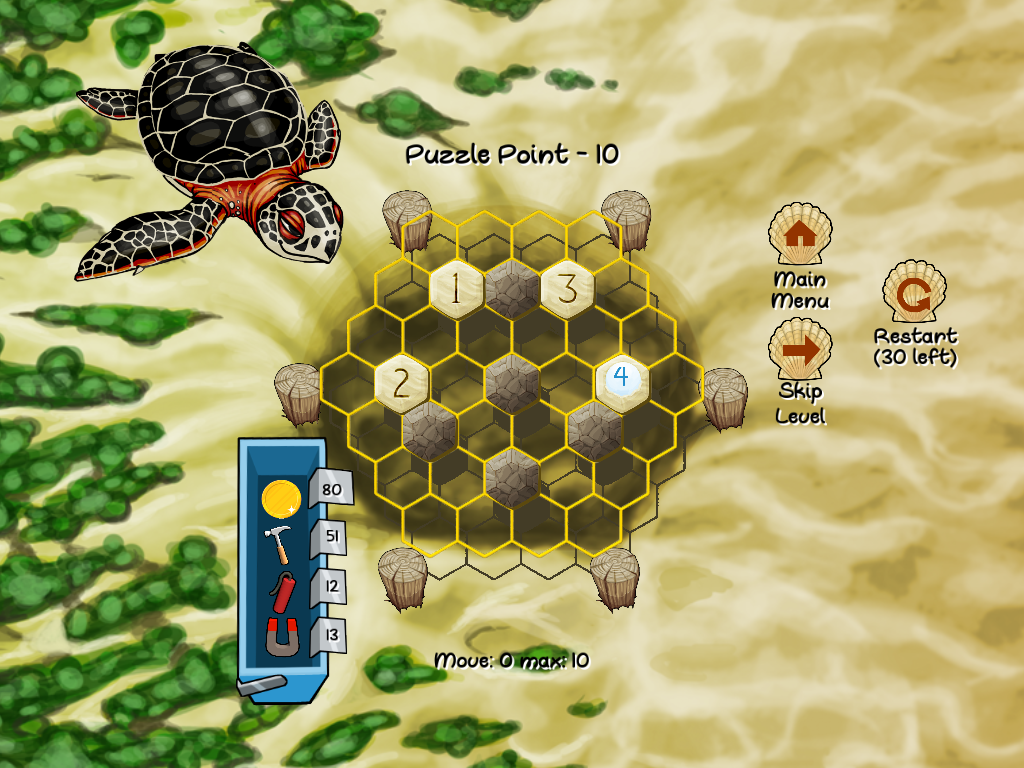 If the level gets too difficult, you have two ways to move forward. Press Skip Level. For 15 coins, you can see the solution. For 10 coins, you can just skip to the level.