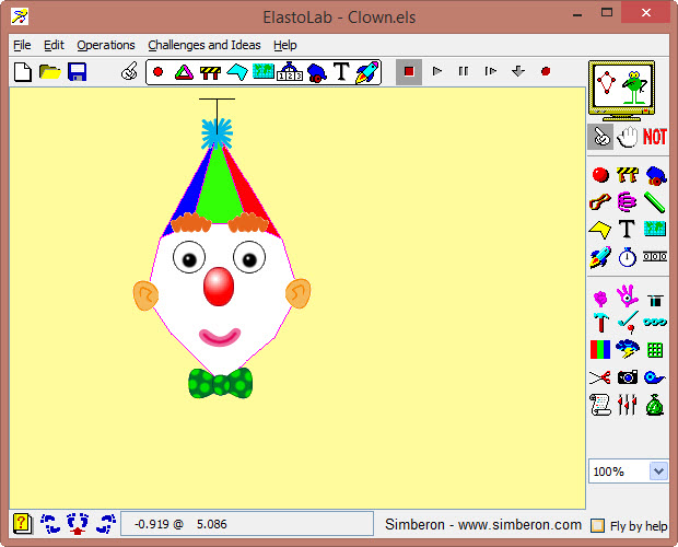 ElastoLab is a fun program for kids that lets them play with sound, images and motion in a simulated physics environment. ElastoLab has been released as a free-ware program. You may download it from here (Windows version only).